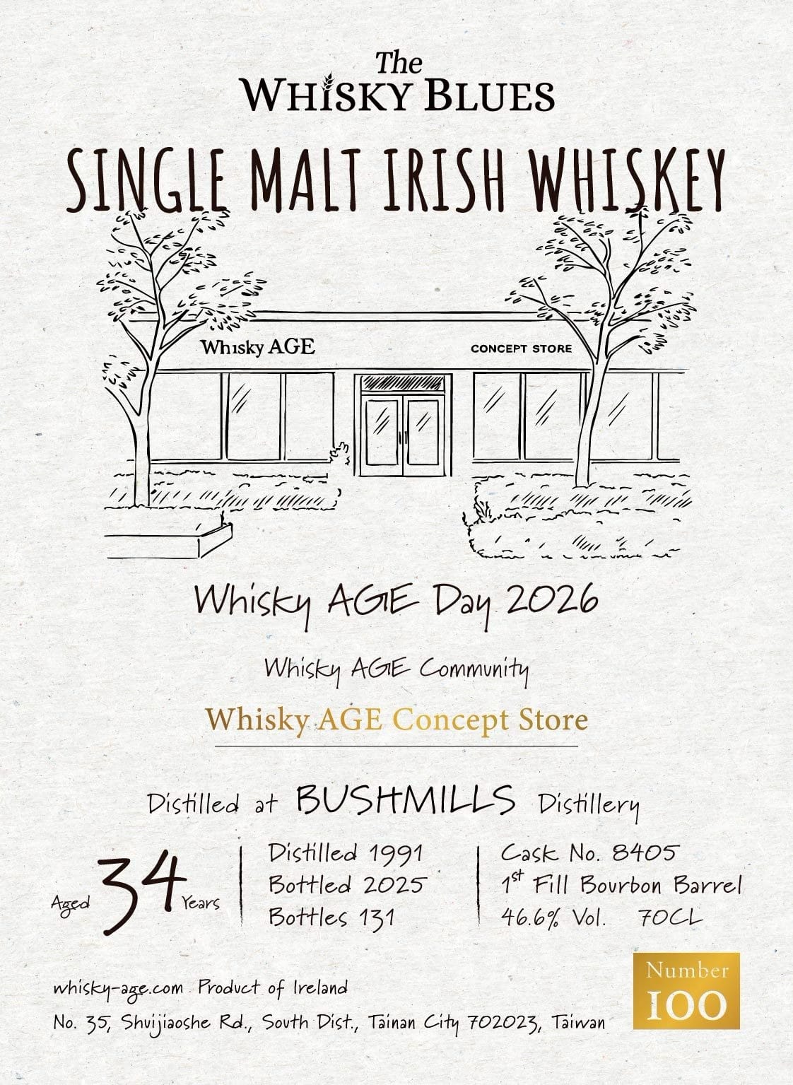 The Whisky Blues, No.100, Bushmills, 1991, 2025, 34yo, 1st Fill Bourbon Barrel, 46.6%