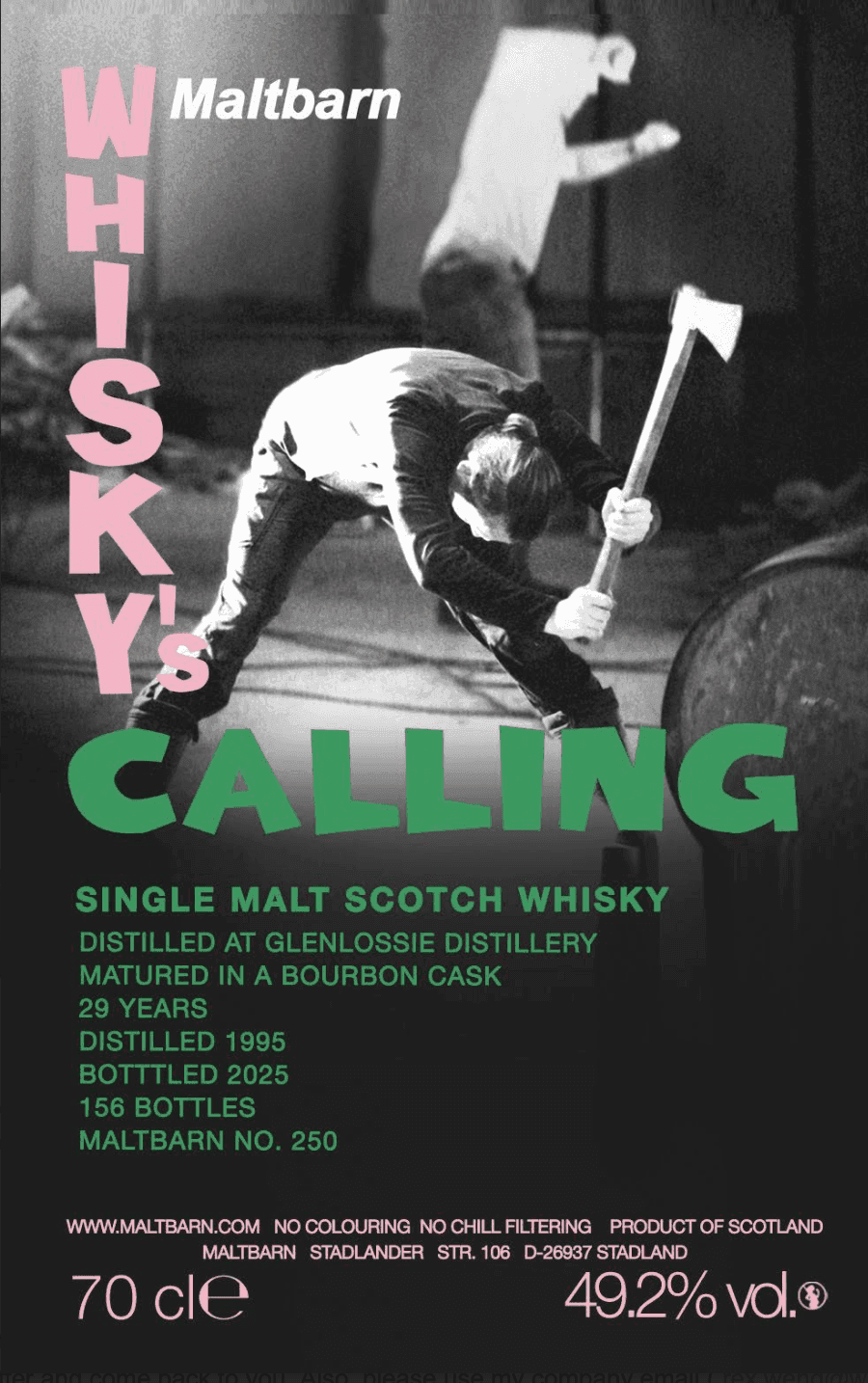 Maltbarn, No.250, Glenlossie, 1995, 2025, 29yo, Bourbon, 49.2%